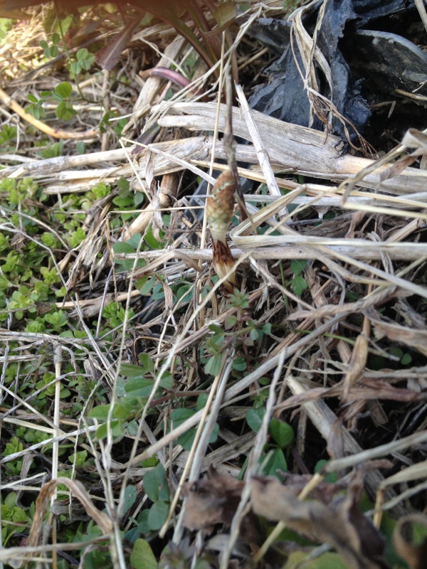 右側の二畝は小さい子供用にツルを切っておいた物で、左のツル付きは年長組さん用。